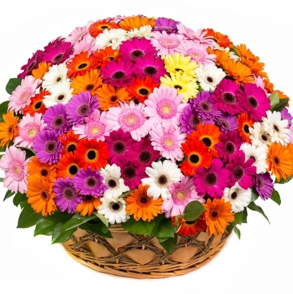 Корзина из 101 разноцветной герберы | Фото и цена в Железнодорожном