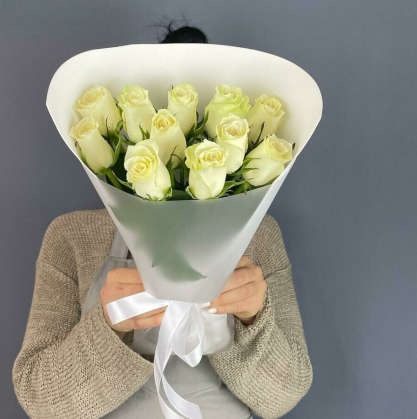Купить букет из 11 белых кенийских роз в Железнодорожном