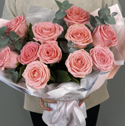 Буукет 11 розовых роз с эвкалиптом | Купить с доставкой в Железнодорожном