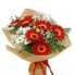 Презентабельный букет из гербер и хризантем с добавлением ромашки, украшеный папоротником.