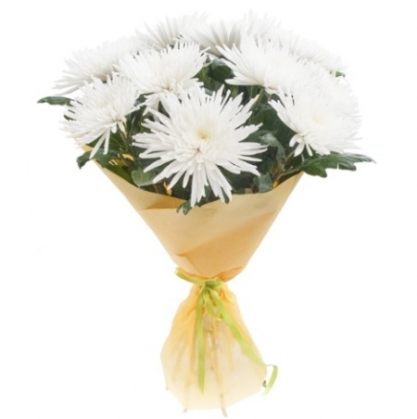 Букет из белой одиночной хризантемы