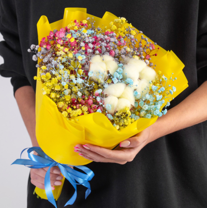 Букет из радужной гипсофилы и хлопка в Железнодорожном
