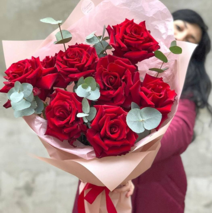 Вывернутые розы назвывают также французскими розами, они представляет собой восхитительный спектакль красоты и элегантности. Красные розы излучают яркую энергию и символизируют любовь, нежность и уважение. Их вывернутые лепестки придают букету изысканность и изящество, а густые, мягкие листья украшают и дополняют центральные цветы. Общий вид букета напоминает о сладострастных моментах жизни и вдохновляет на новые подвиги и достижения.
