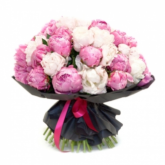 15 малиновых пионов сорта Канзас. Количество пионов в букете можно изменить с помощью калькулятора. В комментарии к заказу можно поменять цвет букета.