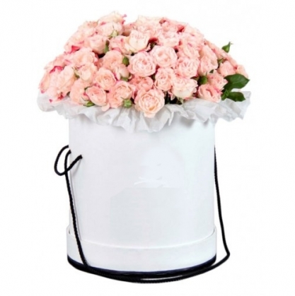Кустовые розы в шляпной коробке | Заказать в Железнодорожном