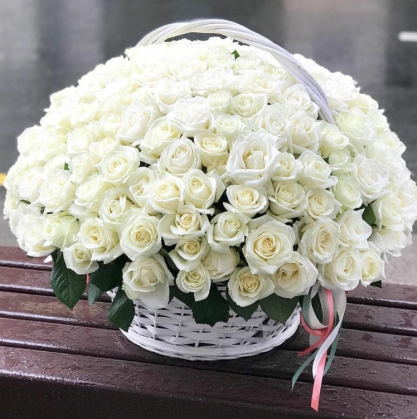 Корзина из 101 белой розы | Купить с доставкой в Железнодорожном