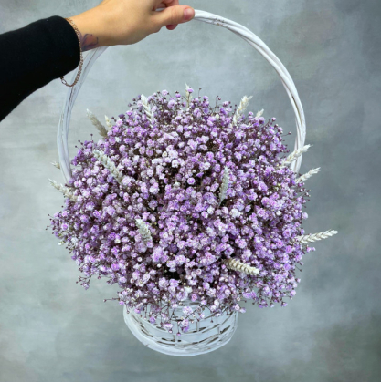 Небольшая корзинка, которая будет радовать своего получателя долгое время. При необходимости размер композиции можно изменить.