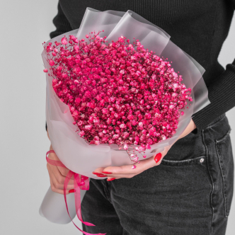Небольшой букетик, состоящий из трех веток белой гипсофилы в стильной матовой пленке - идеальный выбор для создания нежной и милой атмосферы. Гипсофила символизирует милость и искренность, а ее белый цвет напоминает о чистоте и невинности. По вашему желанию количество цветов можно увеличить.