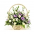 Корзина из разноцветных эустом с добавлением гипсофилы и папоротника
