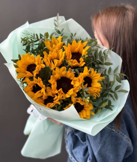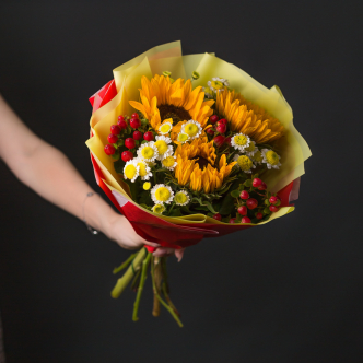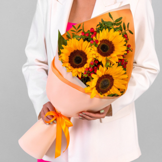 Яркие букеты с подсолнухами подарят хорошее настроение своему получателю!