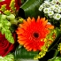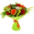 Очень красочный букет из роз, гербер и кустовой хризантемы