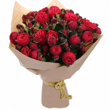 Потрясающий букет из ярких кустовых пионовидных роз