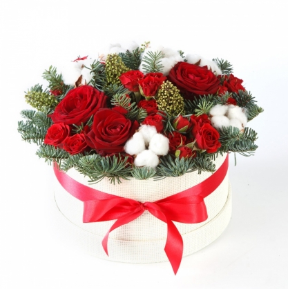 Новогодняя композиция в шляпной коробке